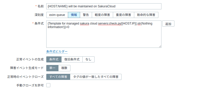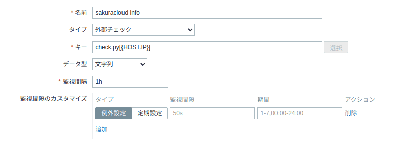 {Template for managed sakura cloud servers:check.py[{HOST.IP}].str(Nothing information!)}=0スクリプト更新後