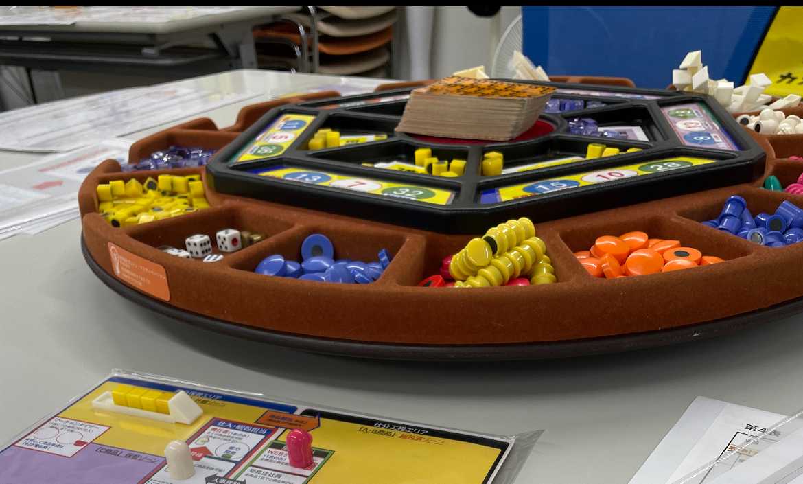 4~5 人 1 卓で商品を仕入れ、値付けして売る。 順番にカードを引き、意思決定を引いたときは行動でき、リスクカードを引くと、休みになったり、倉庫が燃えたりいろいろなリスクがある。 制限時間が終わるかだれかのシートがいっぱいになると期末処理が始まる。 売り買いの、記録を見ながら棚卸しをして売上を計算して経費を払って その期の損益計算書を作り、貸借対照表をつくる(下書きで) 全員の計算があったら、講師の先生に総評を頂き、次のゲームへ進む